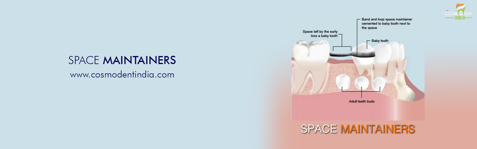 A space maintainer is an appliance that is custom-made for you by us at cosmodent. It can be either removable or cemented onto a tooth in child's mouth.
